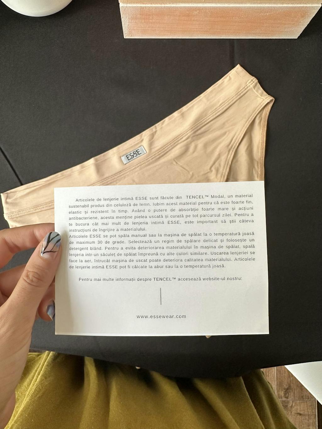 Realizată dintr-un material fin și moale, lenjeria de corp ESSE se simte foarte confortabilă, nu este strâmtă și se mulează perfect pe corp.